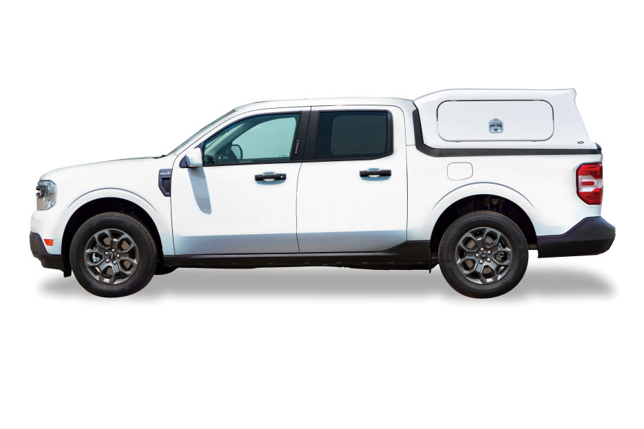 - Mid-rise fiberglass truck cap design provides 15% more cargo area than cab-high models