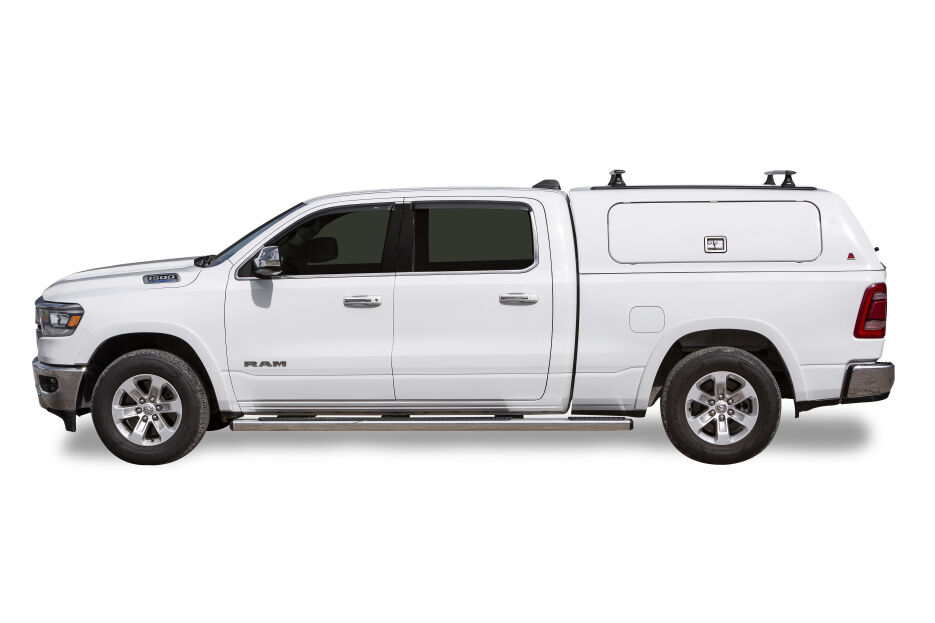 The Rugged 100SCC commercial truck cap features smooth sides and a sturdy rear door equipped with stainless steel drop T-handle locks. It also includes heavy-duty weather-resistant seals, a reinforced roof, and an interior dome light for added convenience. Plus, you can add exterior graphics to showcase your business.
