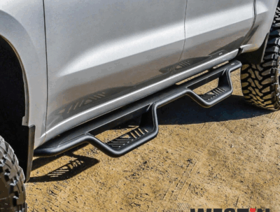 These nerf bars are corrosion-resistant and designed to withstand harsh elements, making them compatible with a variety of makes and models. If you’re looking for a stylish, functional, and easy-to-install step bar, look no further. Available in both stainless steel and powder-coated finishes, they feature a distinctive 4′ drop and die-stamped step plates for maximum all-weather traction.
